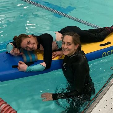 Blue Journey Unified Programs (BJUP) offer adults living with Spinal Cord Injuries, Disorders and Movement Challenges (SCI/D/MC) the opportunities to play, train and compete year around in open water sport disciplines of paddleboarding, swimming and kayak. The program offers pool training (swimming and prone paddleboarding) in the winter and open-water prone paddleboarding, kayak and swimming programming in the summer. In prone paddleboarding participants lie down face first on a lifeguard racing board-style craft and move through the water using their hands and arms. The sport provides a unique opportunity for people with SCI/D/MC to participate in an athletic/recreational activity with minimal need for special equipment or accommodation. When people with and without SCI/D/MC paddle next to each other it is virtually impossible to discern who arrived at the beach in a wheelchair. Prone paddleboarding, kayaking and open water swimming are globally practiced activities that are all components of international open water sports as well as being individual aquatic sport disciplines practiced at open water venues around the world. In prone paddleboarding participants lie down face first on special race boards and move through the water using their hands and arms. The sport provides a unique opportunity for people with SCI/D/MC to participate in an activity with minimal need for adapted equipment or accommodation. When people with and without SCI/D/MC paddle next to each other it is virtually impossible to discern who arrived at the beach in a wheelchair. The inclusion of racing kayaks known as surf skis provide those who may have physical barriers to laying down prone or who prefer a different activity the chance to enhance their strength, endurance and balance that allows them to explore local waters side by side with those with and without SCI/D/MC. Swimming is recognized as a valuable rehabilitation and exercise modality for anyone with or without a physical challenge. The addition of open water opportunities with professional coaches allows participants to immerse themselves in an outdoor activity that also frees them from many limitations they may find on land.